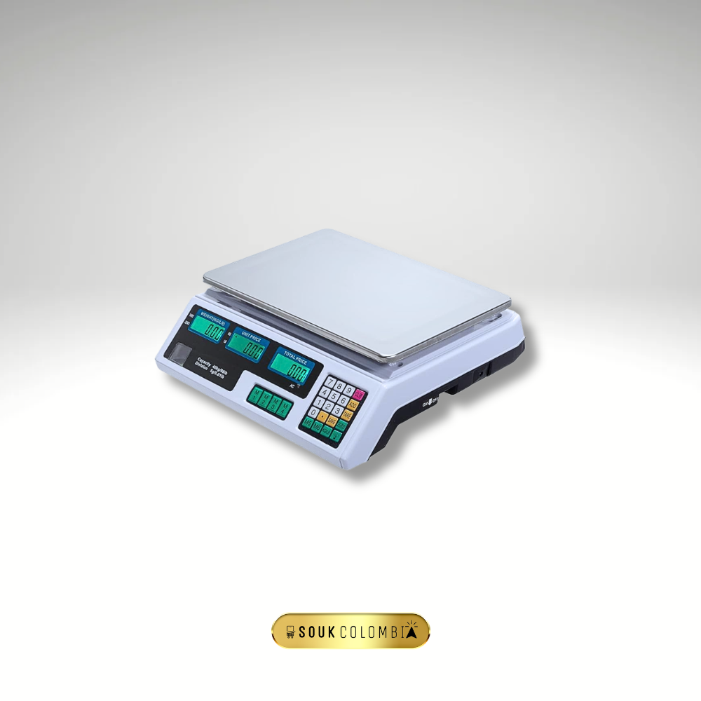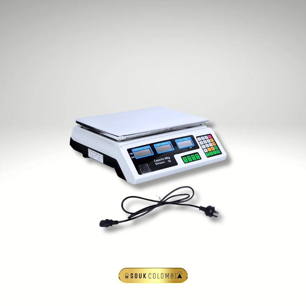 | báscula electrónica 40kg | balanza digital comercial | balanza para tienda | báscula precisa fruver | balanza con función TARA | balanza fácil de limpiar | balanza profesional carnicería | báscula con memorias | equipo de pesaje Colombia | electrodomésticos y accesorios tienda |