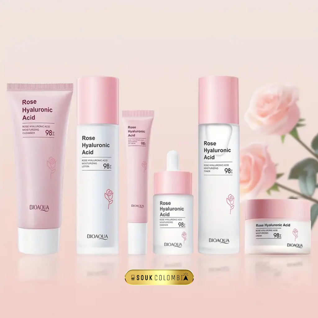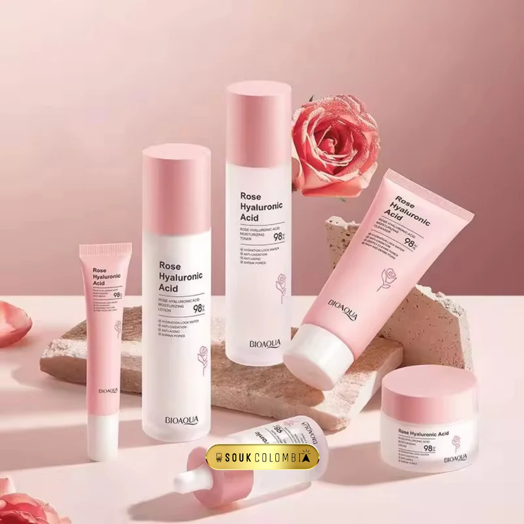 ¡Luce Una Piel Radiante E Hidratada Con El Kit X6 Rutina De Rosas Con Ácido Hialurónico De Bioaqua! Formulado Con Ingredientes Naturales, Este Combo Combina El Poder Rejuvenecedor Del Extracto De Rosas Y La Hidratación Profunda Del Ácido Hialurónico Para Renovar Tu Piel.