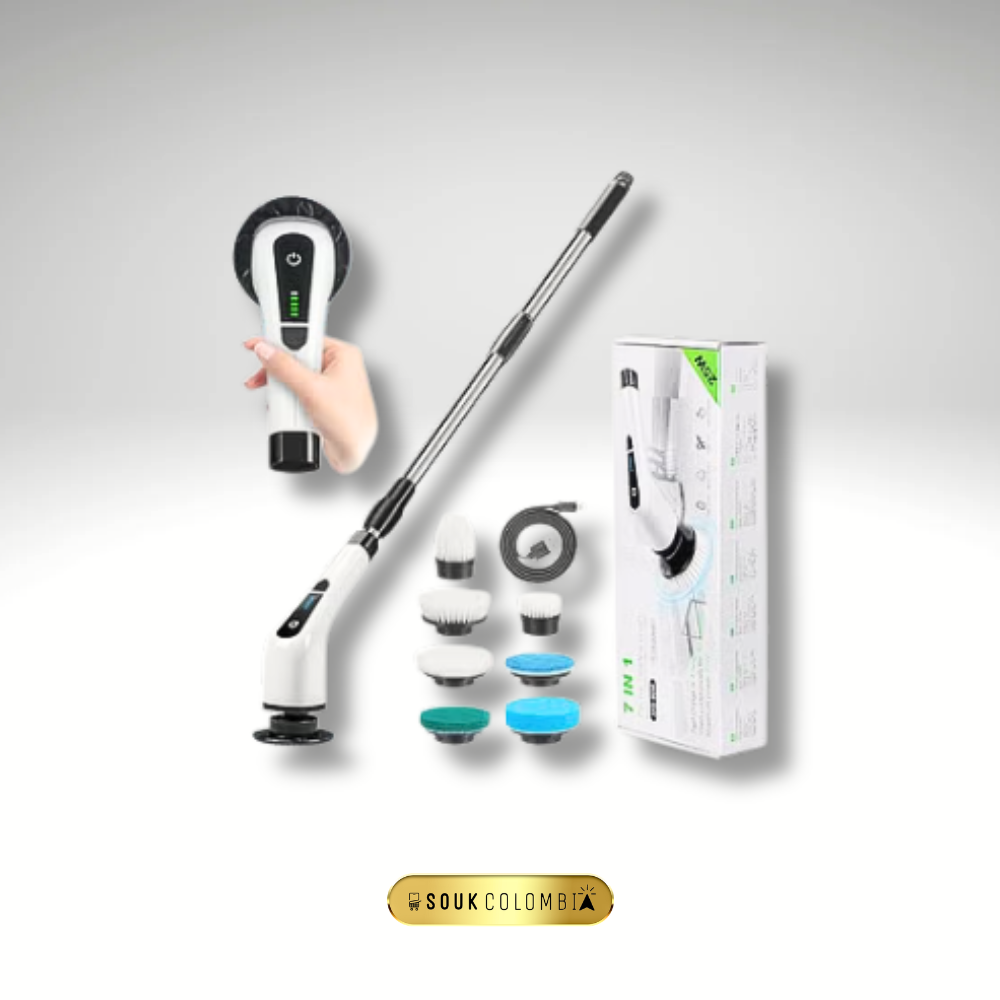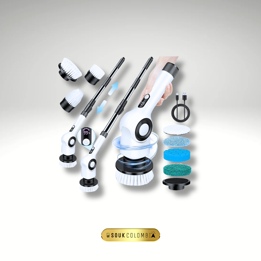 | fregadora eléctrica giratoria | limpiadora con 9 accesorios | fregadora potente hogar | cepillos intercambiables limpieza | fregadora recargable USB | limpieza sin esfuerzo | fregadora baños cocinas pisos | herramienta limpieza versátil | fregadora compacta y ligera | electrodomésticos hogar limpieza |