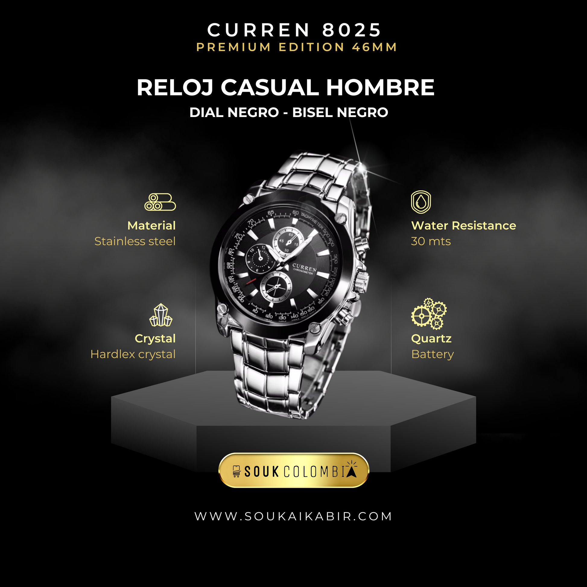 El Curren 8025 Negro Es Un Reloj De Pulsera Para Hombre Que Combina Un Diseño Deportivo Y Elegante, Ideal Para Quienes Buscan Un Accesorio Versátil Y Funcional. A Continuación, Se Detallan Sus Características Principales: