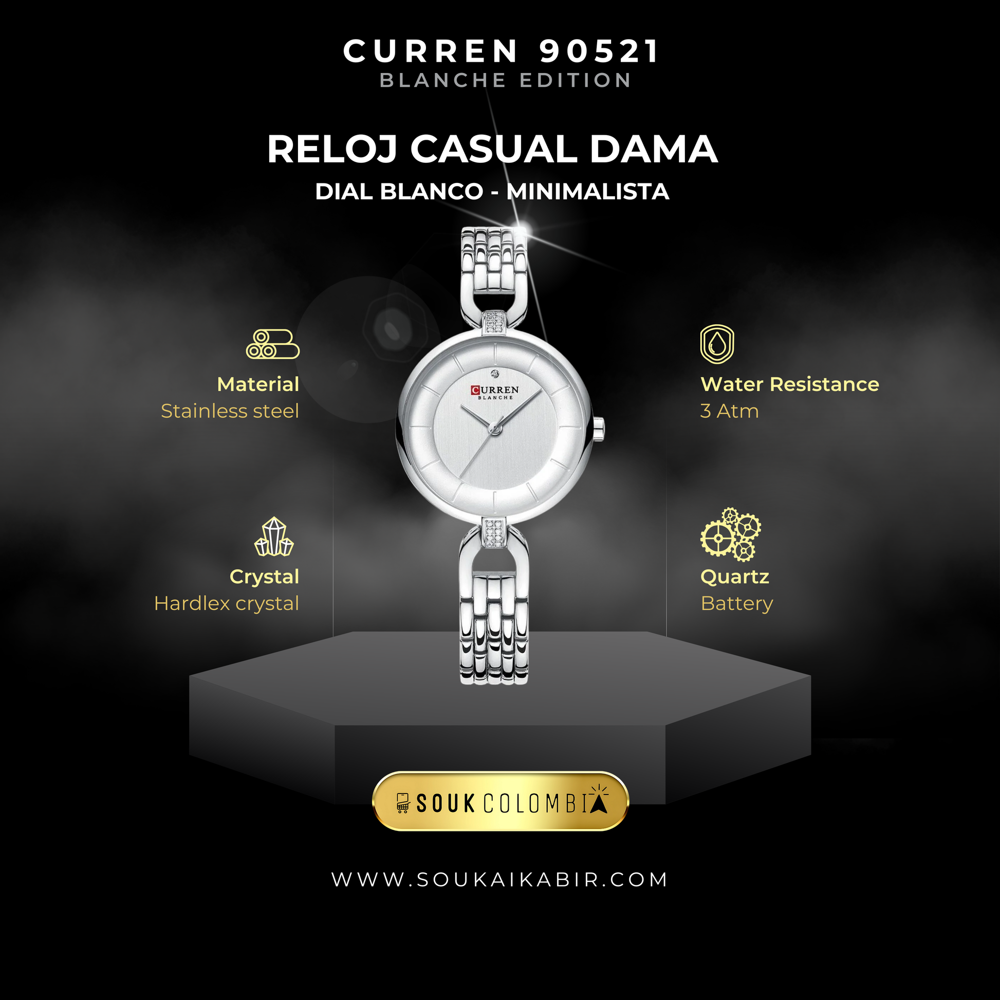 El Curren 90521 Blanco Es Un Reloj Femenino Que Destaca Por Su Diseño Elegante Y Contemporáneo, Ideal Para Quienes Buscan Un Accesorio Versátil Que Complemente Tanto Atuendos Casuales Como Formales.