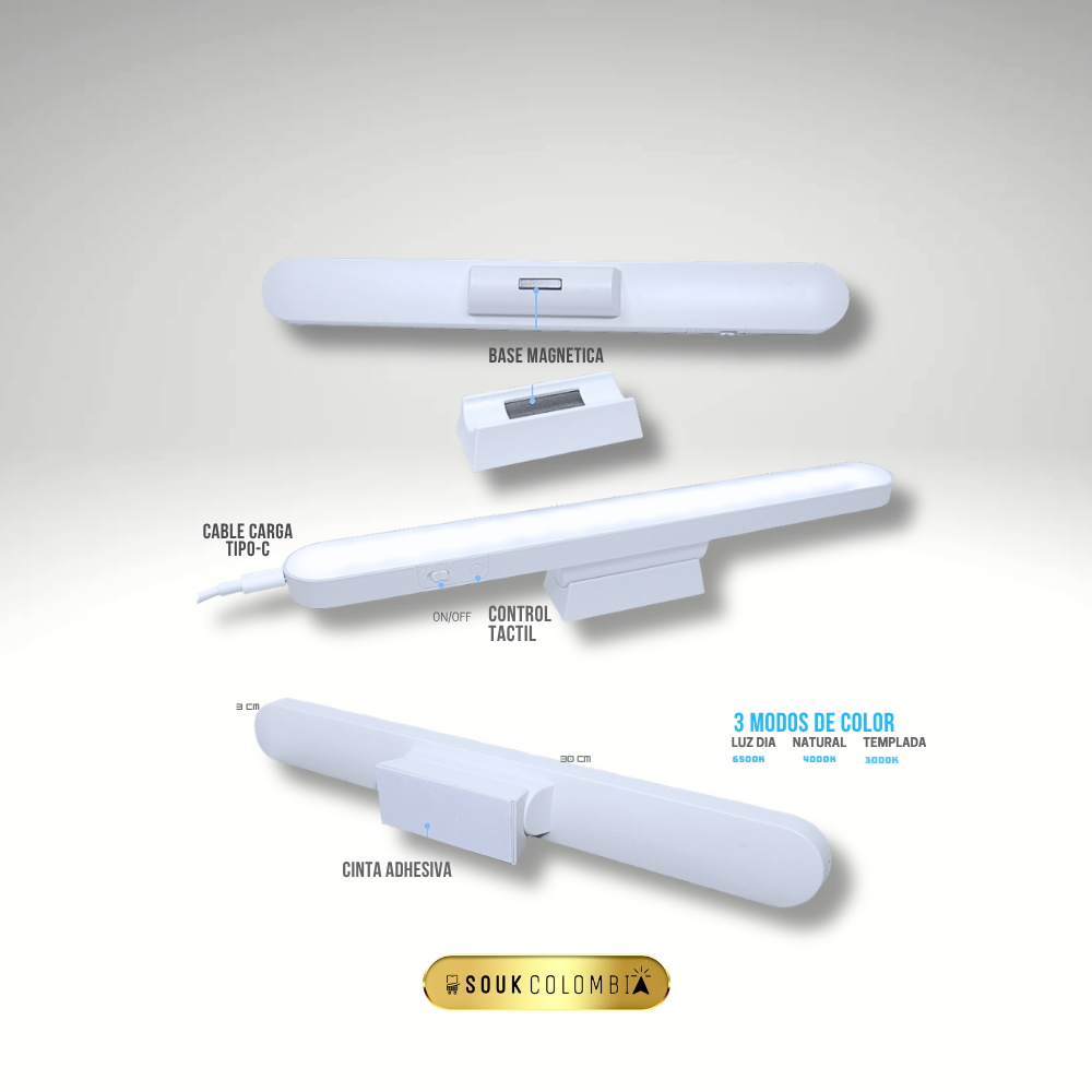 Su diseño inalámbrico y adhesivo mejorado permite instalarla fácilmente en cualquier lugar: escritorio, dormitorio, cocina, oficina, espejo o garaje. Además, su cuerpo magnético ofrece mayor flexibilidad para fijarla donde prefieras. Compacta y ligera, es ideal para espacios pequeños y también funciona como linterna en camping o situaciones de poca luz.